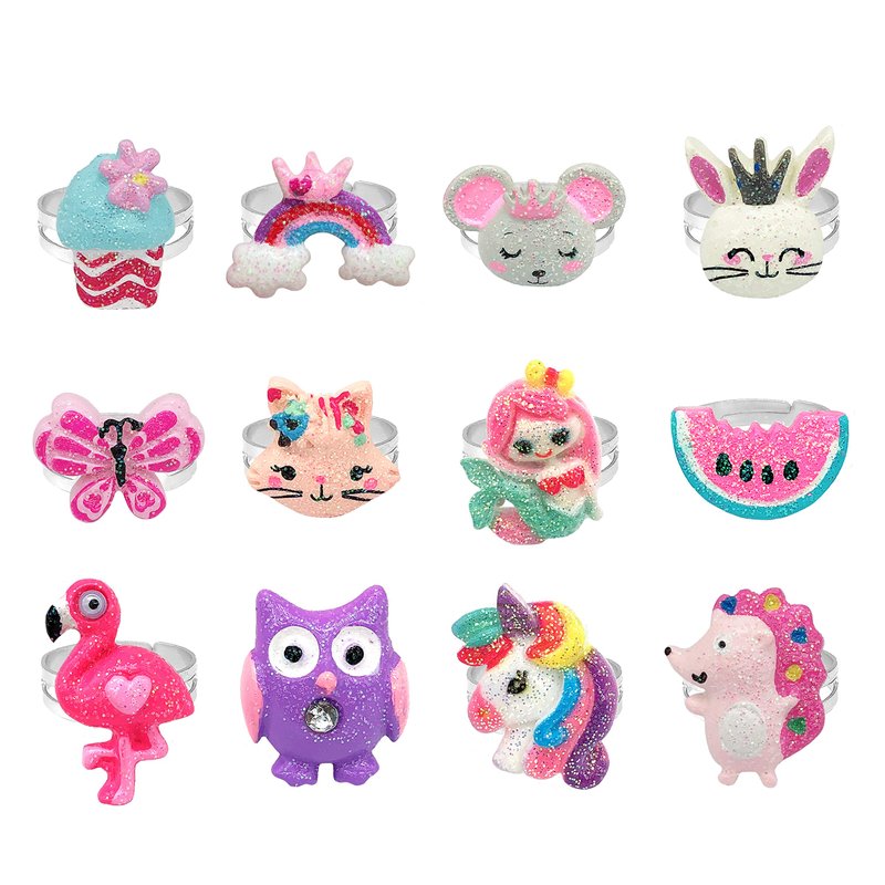 - Toy play set include: 1pc necklace and 1pc matching bracelet, 12pc adjustable rings set.