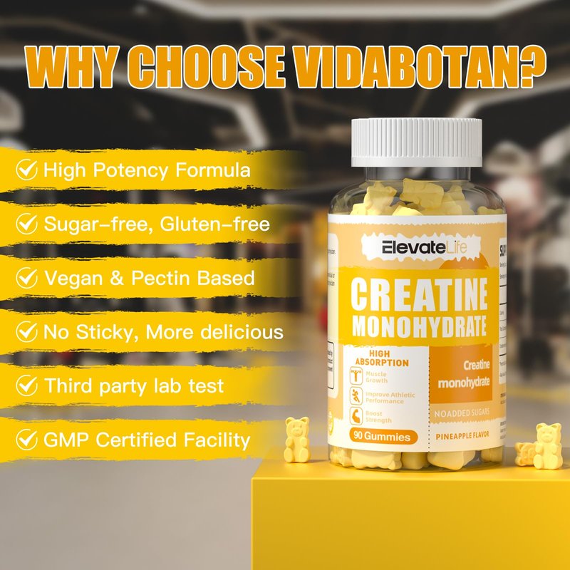 - 90 gummies (45 Servings) of Creatine Monohydrate Per Bottle