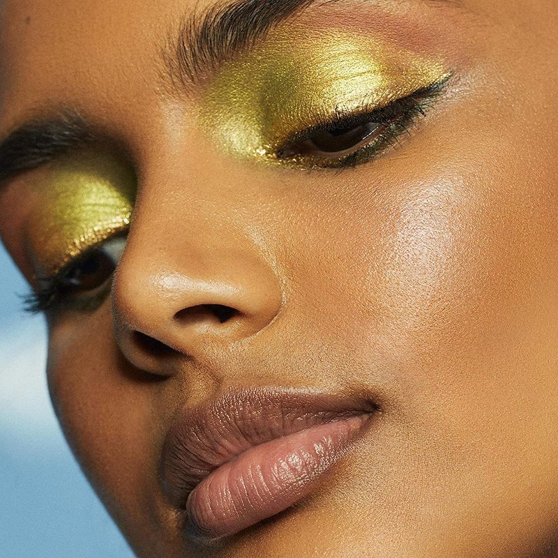 - use fingers or a flat eyeshadow brush and apply on its own for a subtle, soft look, or layer it on top of eyeshadow for something more dramatic.