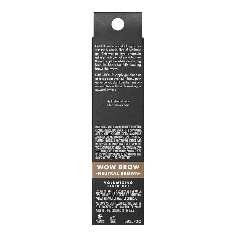 e.l.f. Wow Brow Gel, Volumizing, Buildable, Wax-Gel Hybrid, Creates Full, Voluminous-Looking Brows, Locks Brow Hairs In Place, Neutral Brown, Fiber-Infused, 0.12 Oz