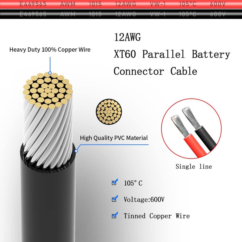 - The surface is wrapped with a strong PVC material.Wire gauge:12AWG;Line length:150mm.