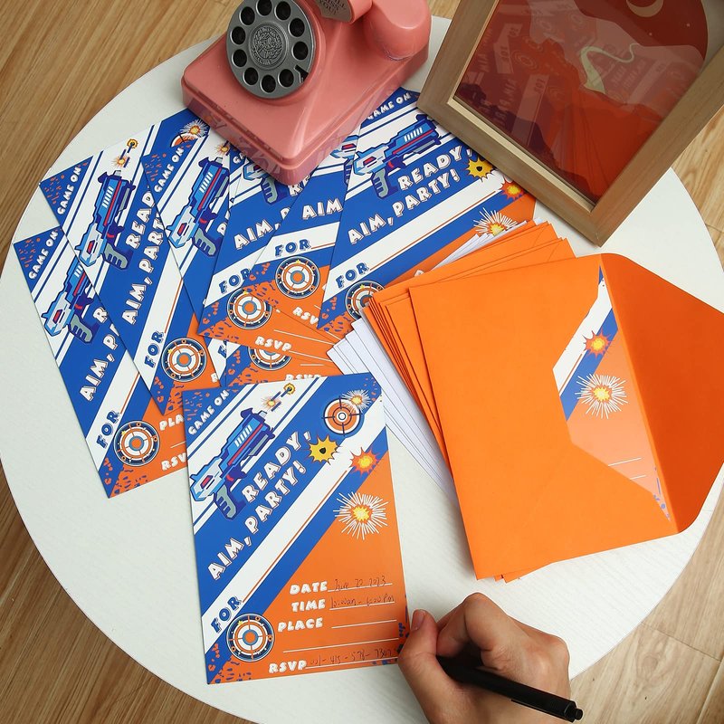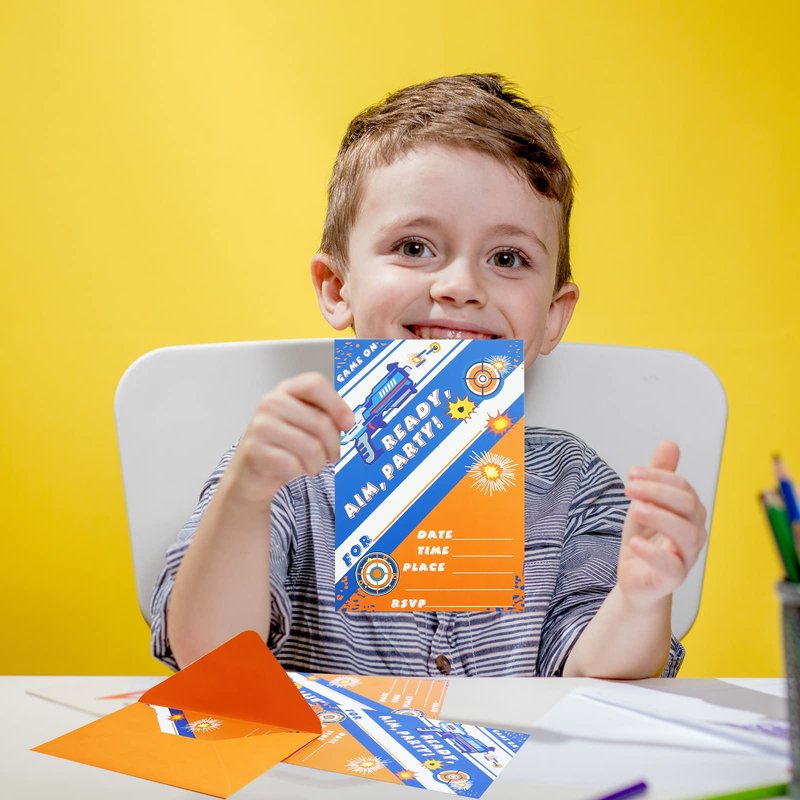 - WIDE APPLICATION:This invitation card set is perfect for dart war themed party. It’s the perfect choice for nerf gun party.