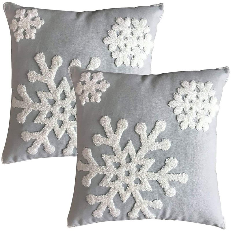 Elife Soft Square Christmas Snowflake Home Decorative Canvas Cotton Embroidery Throw Pillow Covers 18x18 Cushion Covers Pillowcases for Sofa Bed Chair (1 Pair, Grey)