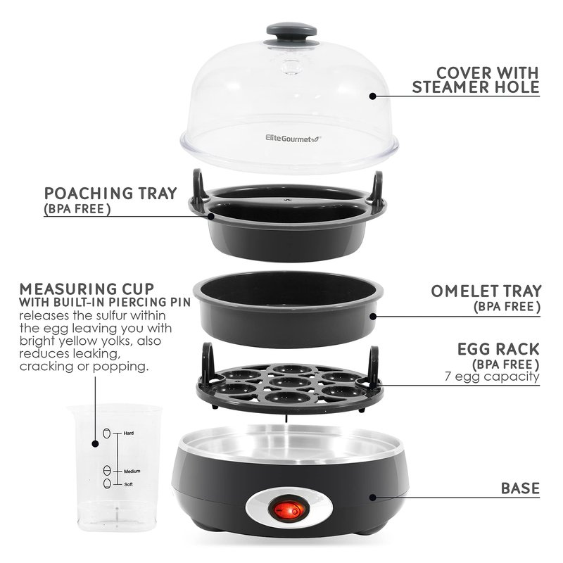- VERSATILITY: Whether pairing with avocado toast or preparing deviled eggs for a potluck, the Elite Gourmet Easy Egg Cooker is an all-in-one egg boiler, poacher, scrambler, omelet/veggie steamer, and more.