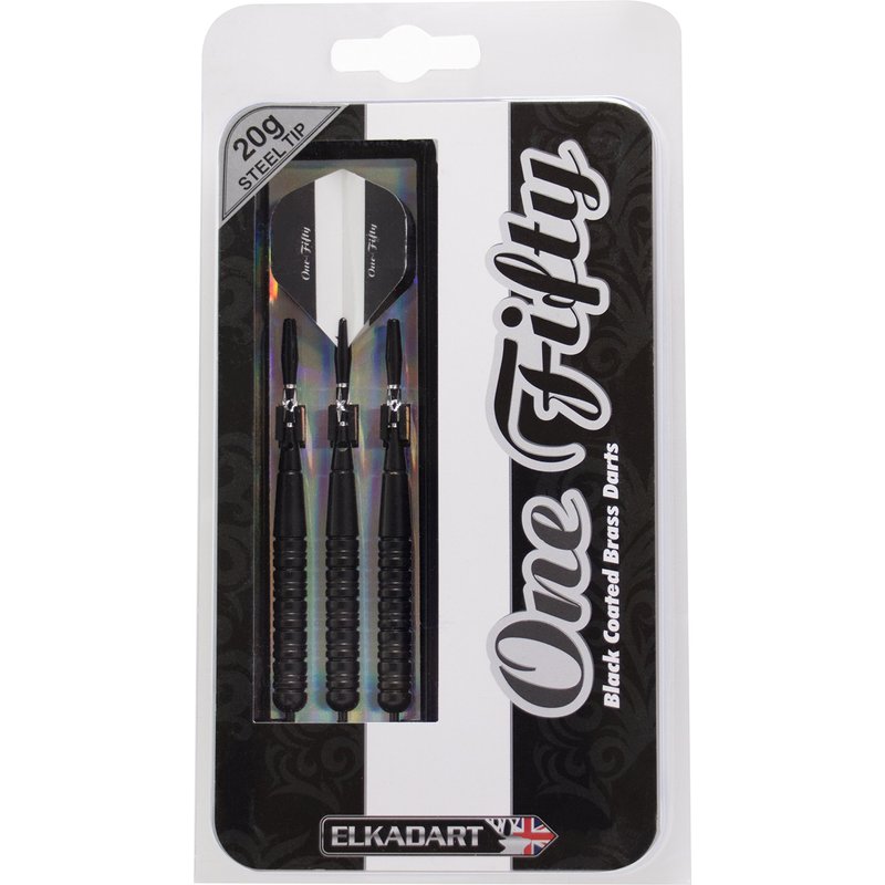 Elkadart unisex adult Elkadart One Fifty Steel Tip Darts with Storage Travel Case 20 Grams, Black, 20g US