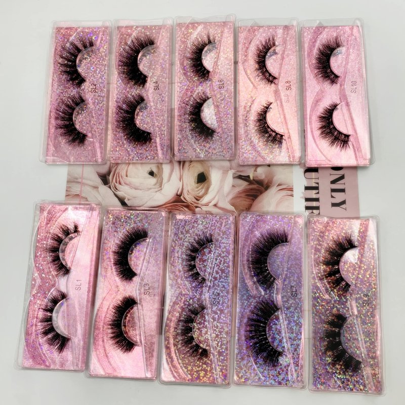 Ellazzle 10 Pairs Faux Mink Eyelashes Wholesale Lashes Pack, Lashes Natural Look 16mm-20mm False Eyelashes Pink