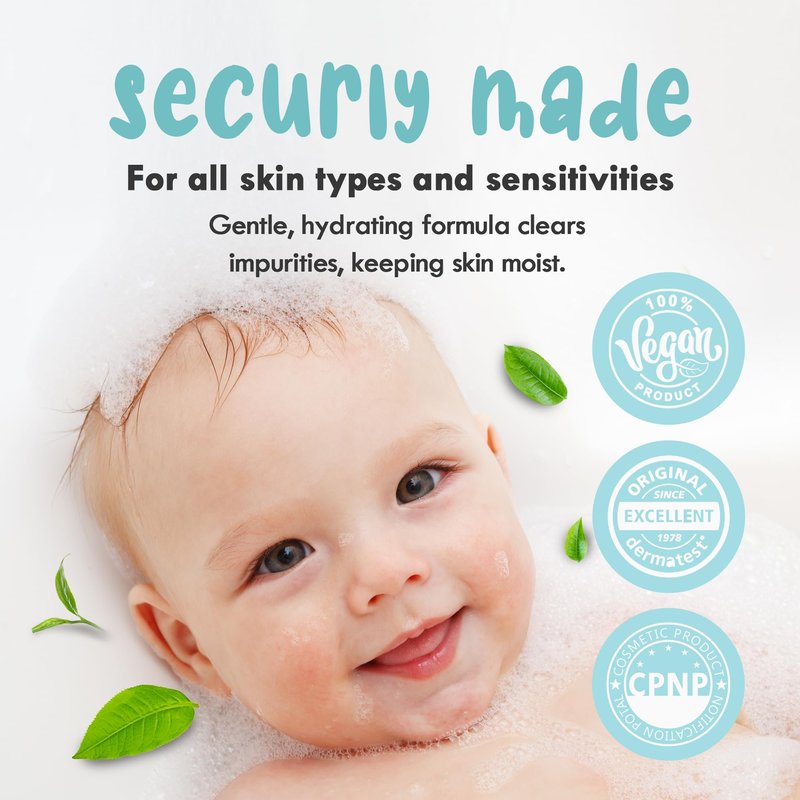 - GENTLE HYDRATION. Experience soft and hydrated skin with our gentle baby shampoo and body wash. Its mousse-like foamy texture is enriched with calming botanicals like Ceramide and Centella Asiatica Extract. This luxurious formula ensures your baby's skin remains supple without any harshness.