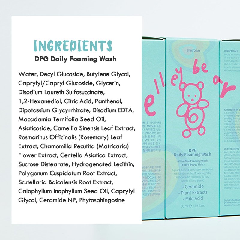 - BABY'S RADIANT SKIN. Elevate your baby's skincare with ELLEYBEAR DPG Daily baby wash and shampoo. Infused with Hodong Seed Oil and Licorice Extract, it gently uncovers your baby's natural shine. Suitable for both newborns and toddlers, it's the go-to solution for maintaining their smooth and radiant skin.
