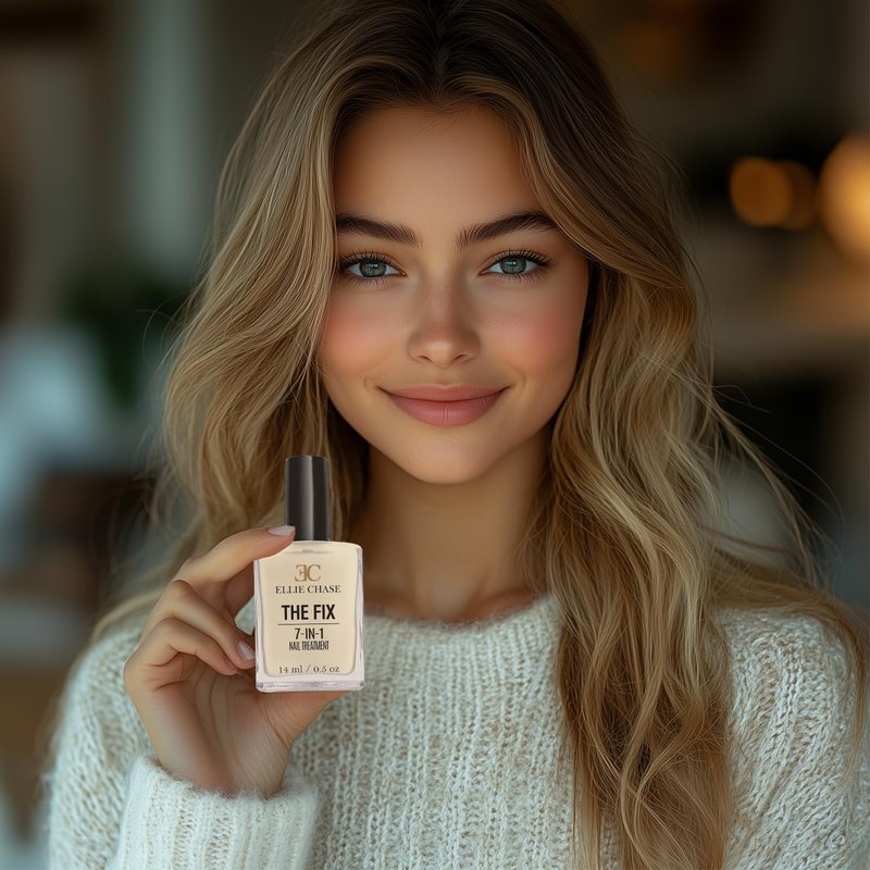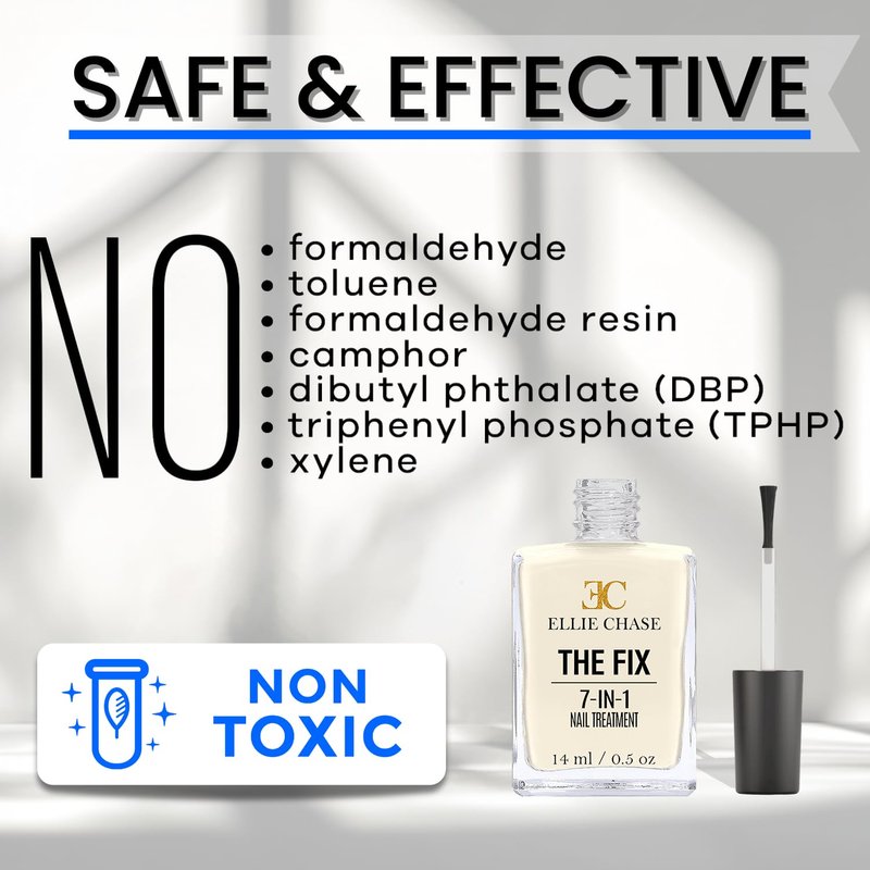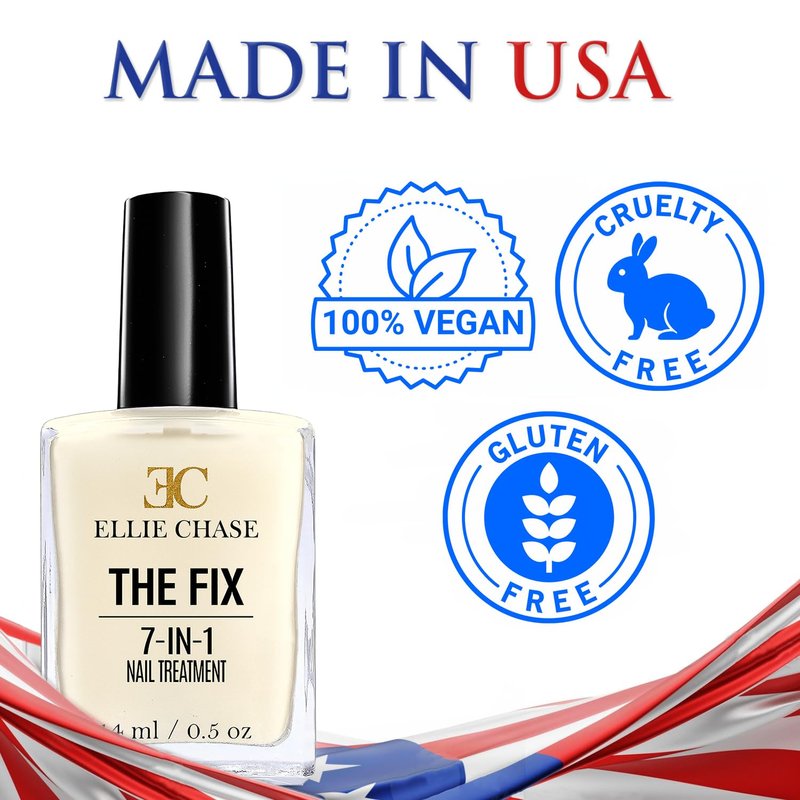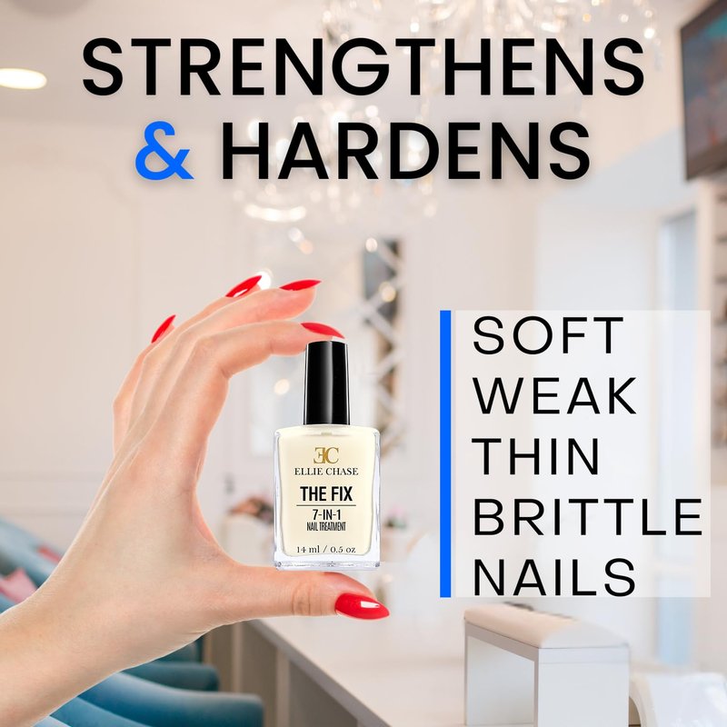 Ellie Chase 7 in 1 Nail Strengthener, Growth, Hardener, Repair Treatment Polish 0.5 OZ/Peptides/Vitamin E/Violet Extract/Oils/Amino Acid/Extra Hydration/Strength/Smoothing/Hardening/Protection/Shine