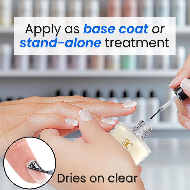 - Dries on clear when applied. Can be used as base coat or standalone nail treatment