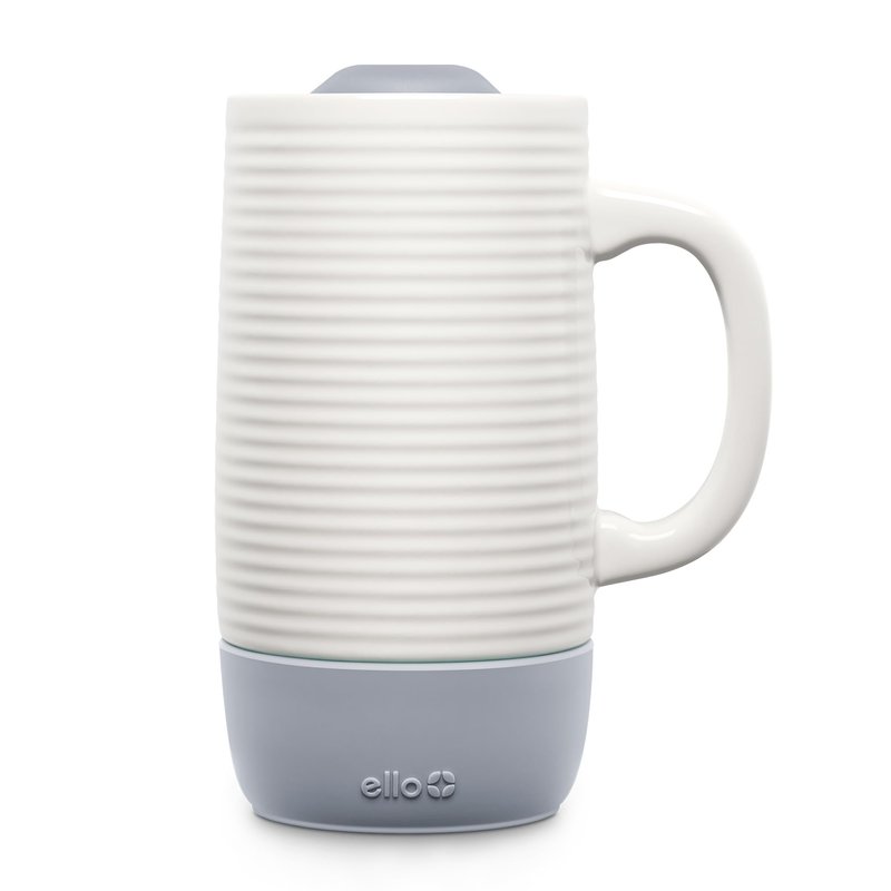 Ello Jane 18oz Ceramic Travel Mug with Handle, Splash-Resistant Slider Lid and Built-in Coaster, Perfect for Coffee and Tea, BPA Free, Dishwasher Safe, Holiday Gift Her Him, Gray