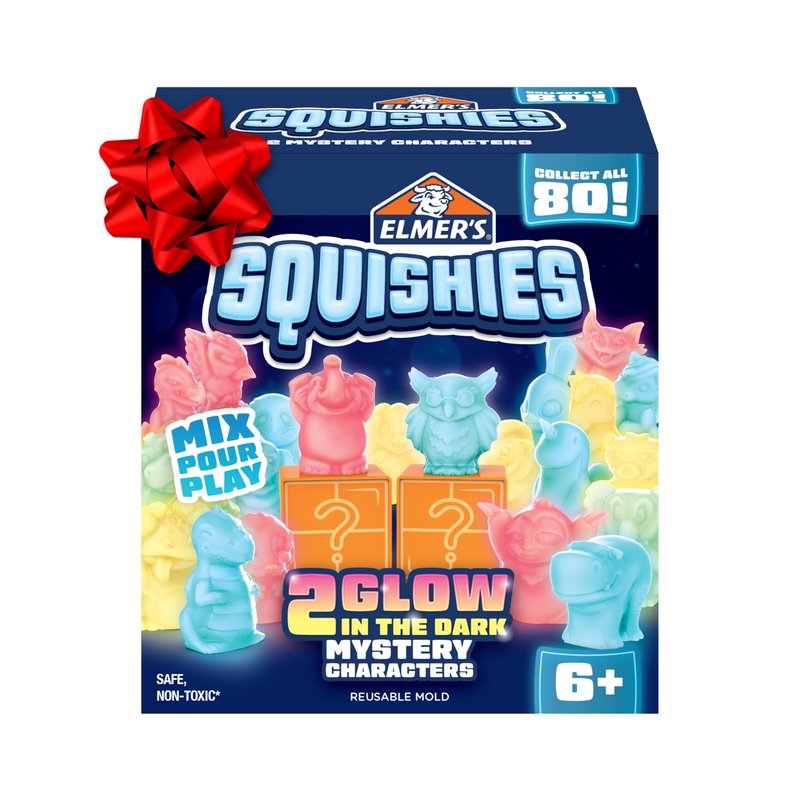 Elmer's Squishies Kids’ DIY Activity Kit, Glow in the Dark Toy Kit, Creates 2 Mystery Characters, 13-Piece Set, Ages 6+