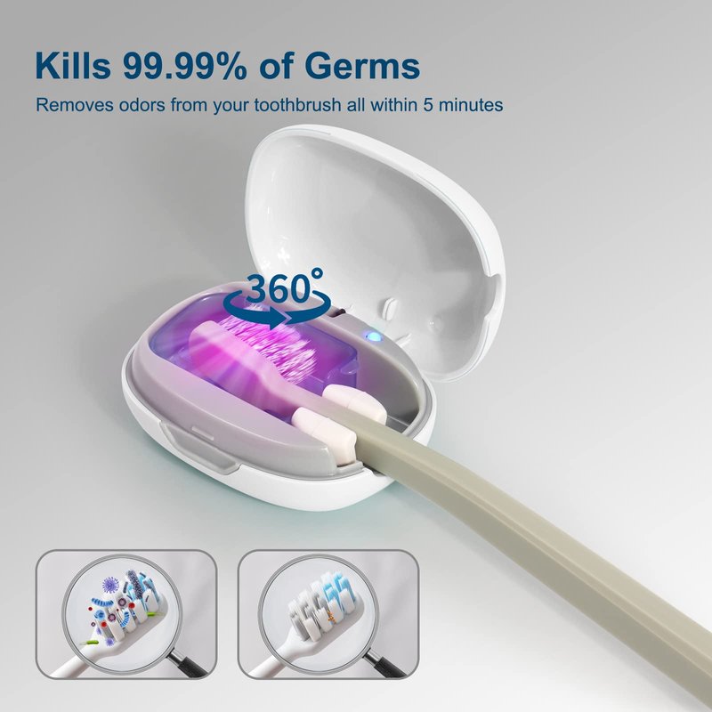 - Kills 99.99% of Germs: Sanitizer disinfects, kills bacteria, and removes odors from your toothbrush all within 5 minutes. EPA Est. No. 98857-CHN-1.