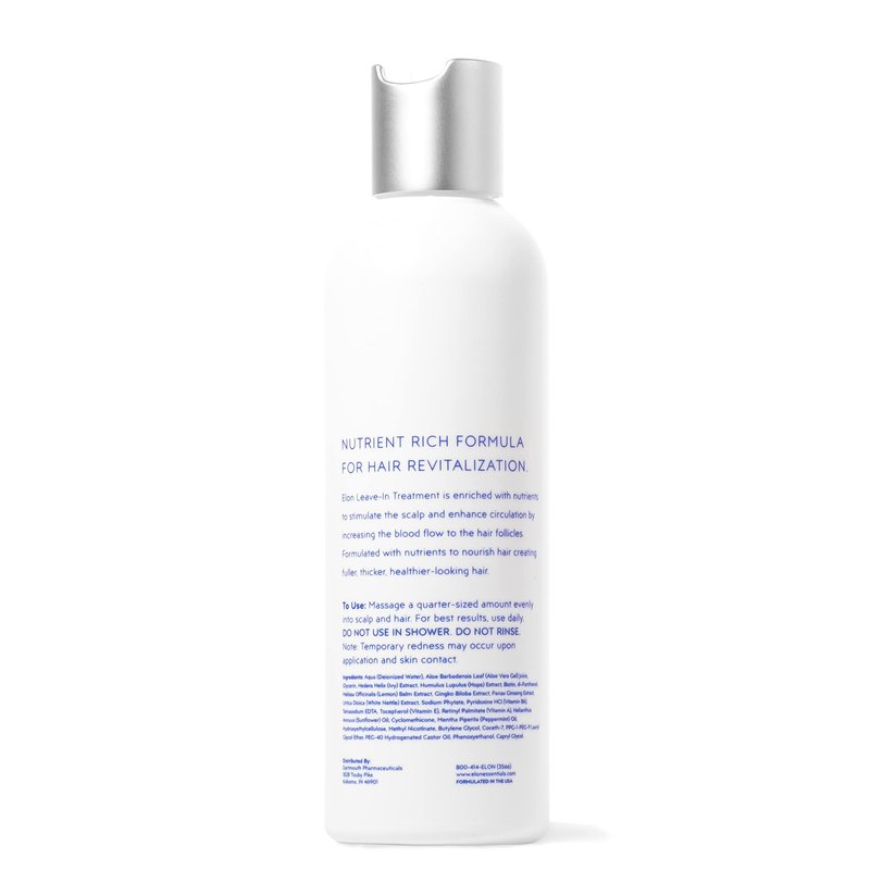Elon Leave-in Hair Thinning Treatment (6.7 Oz): Experience the benefits of Elon’s Leave In Conditioner Hair Growth care for hair loss and scalp. Our specially formulated women hair loss products are designed to nourish and condition hair follicles, ensuring maximum nutrient absorption for promoting healthy hair growth. Free from sulfates and parabens, this color-safe hair loss conditioner for women is a no-wash solution, making it convenient for daily use. The key to healthy hair growth lies in microcirculation, and Elon's leave-in healthy hair products are enriched with natural botanicals such as peppermint oil and ginkgo biloba. These ingredients work together to improve microcirculation, promoting hair growth and addressing the early signs of hair loss. Packed with natural ingredients, our leave-in hair thickening products for women reduce hair breakage by retaining moisture and providing essential glycoproteins like Pro-Vitamin B5. Aloe leaf and sunflower oil further nourish and soothe the hair, promoting optimal health and facilitating robust hair growth. To use this leave in conditioner for hair growth, simply apply a quarter-sized amount of our daily Hair Nourishing Leave-In after shower or bath and towel-drying your hair. Massage it throughout the scalp without rinsing. For best results, make it a part of your daily routine and witness the transformation. — About Us: Recommended to patients by dermatologists for over 30 years, Elon Essentials is a trusted brand that has provided effective, pharmaceutical-grade hair, skin, and nail products since 1991.