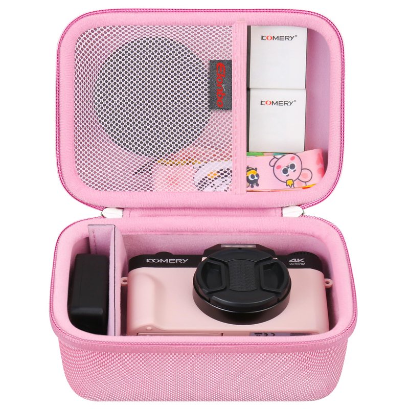 Elonbo 4K Digital Camera Carrying Case for Femivo/VETEK/IWEUKJLO/VJIANGER/WIKICO/Saneen/OIEXI 4K 48MP Vlogging Camera, Travel Compact Camera Storage Cover Bag Organizer Holder, Pink