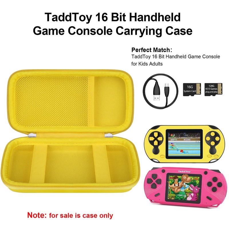 - 【Perfect Fit】【Specially Designed for TaddToy 16 Bit Handheld Game Console】--This handheld game console carrying case is specially designed for taddtoy 16 bit handheld game console. Internal space 1:1 build, perfectly fit for taddtoy 16 bit handheld game. extra mesh pocket for charging cables. (CASE ONLY! TaddToy 16 Bit handheld game and accessories are not included)