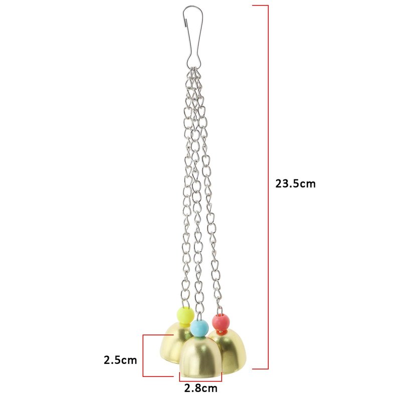 -Each string of bells features three small bells hanging from a metal chain, with a total length of approximately 23.5cm and each bell measuring 28x25mm, providing auditory and visual stimulation for your pet bird.