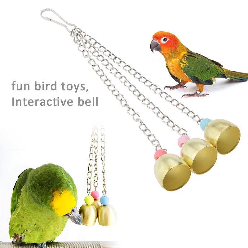 eMagTech 3PCS Parrot Alloy Bell Toys Bird Interactive Chain Metal Bell Toy for Cockatiels Conures and Lovebirds Hanging Bell Bird Activity Stand 23.5cm