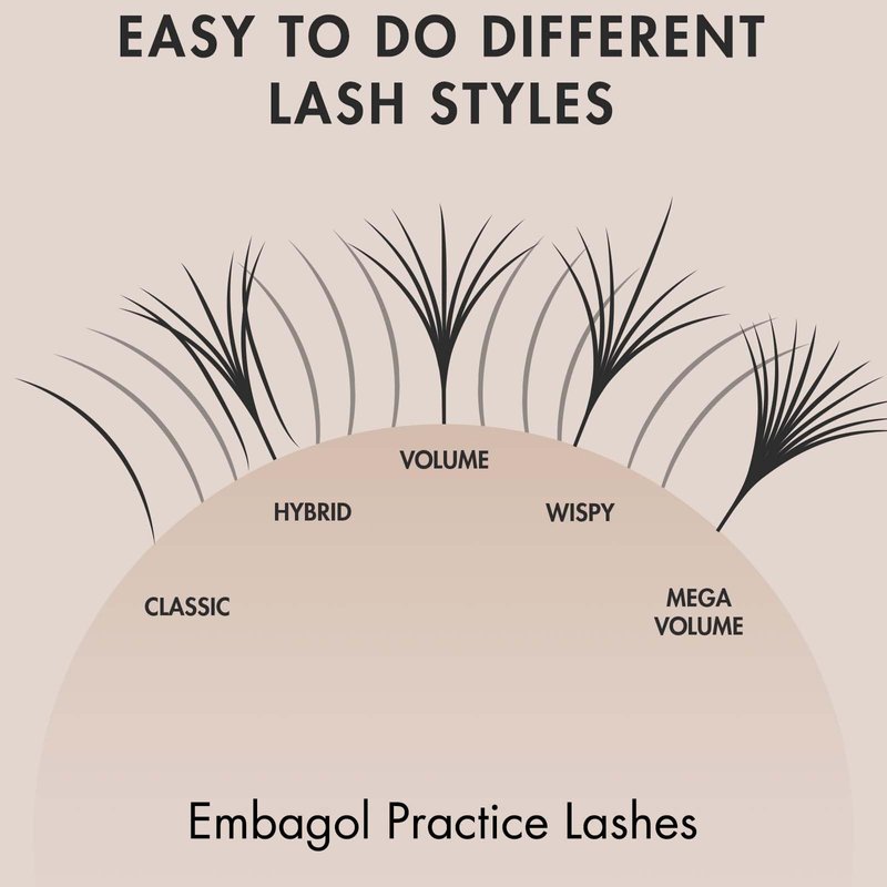 - Practice Different Lash Styles: Embagol Practice Lashes are all very close to real eyelashes and suitable for all types of lash extensions, including volume, classic, ellipse flat, or rapid volume lashes. You can practice various styles and enhance your professionalism in the hearts of customers.