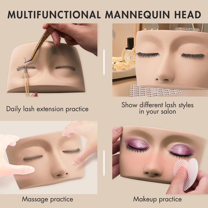 - Multifunctional Use: You can use this versatile face to: 1. Daily lash extension practice; 2. Place it in your salon and show the client your excellent lash work; 3. Makeup practice; 4. Massage practice; 5. Halloween Prank