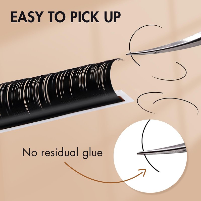 - Easy to fan: Embagol use the more expensive, better quality, more stable PI tape, not too sticky, not too dry - just right. These fine lashes with premium 2mm lash tape allow you to build up to 20D Mega Volume fans!