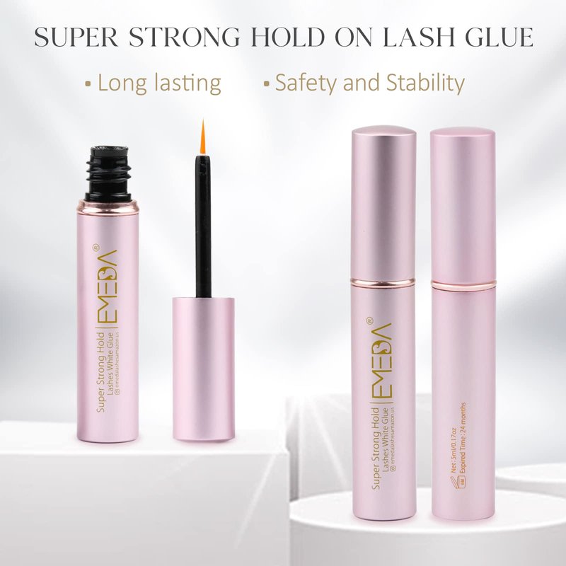 EMEDA False Eyelash Glue Super Strong Hold 24H Clear Glue Latex Free Eyelash Glue Waterproof Lash Glue White Strip Eyelash Adhesive 5ml 0.17oz
