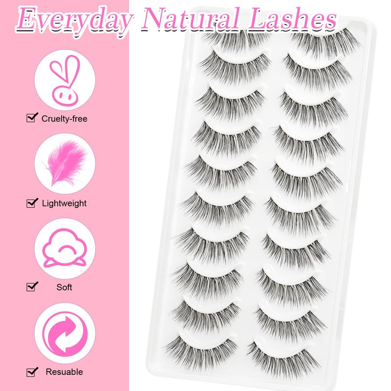 - PACKAGING COMPOSITION: Contain 10 pairs of natural eye lashes 005 style eyelashes.