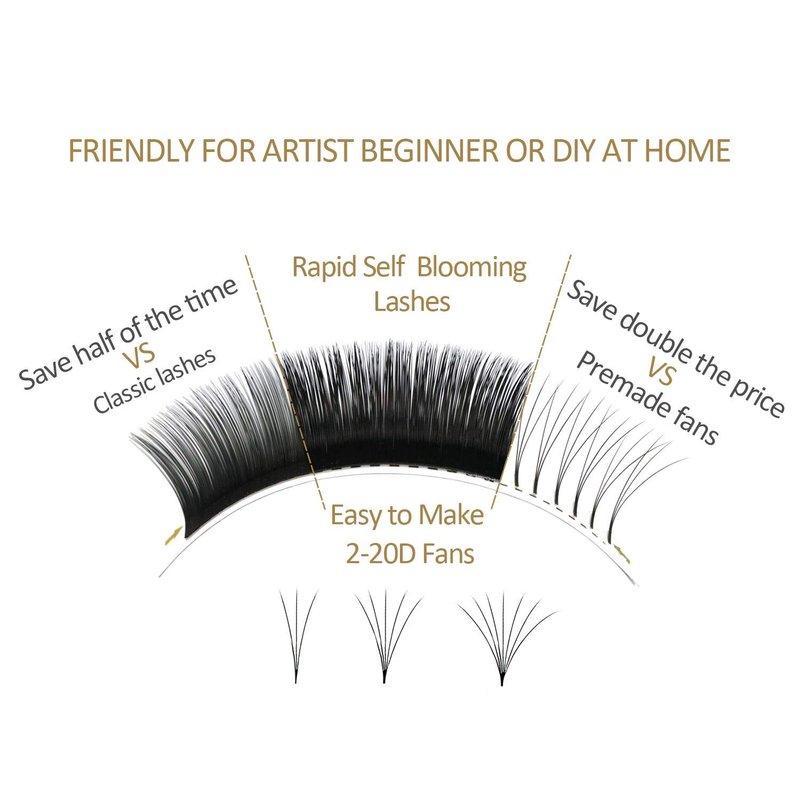 - SAVE YOUR TIME & MONEY:These easy fan lash extensions are friendly for beginner or DIY at home.One box of easy fan lashes can make 20 boxes premade fans.