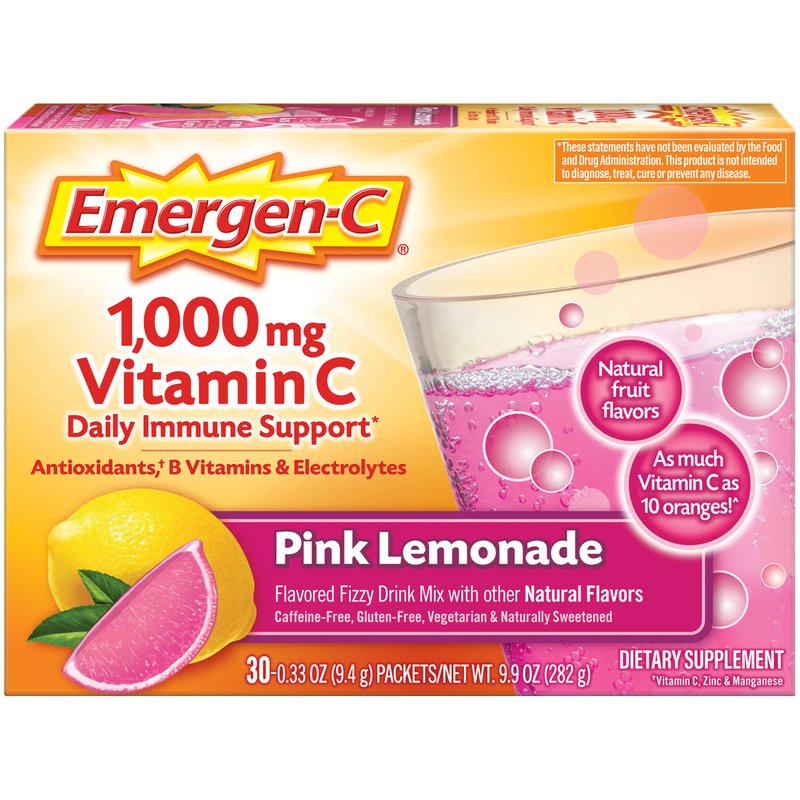 Emergen-C 1000mg Vitamin C Powder, with Antioxidants, B Vitamins and Electrolytes, Immunity Supplements for Immune Support, Caffeine Free Fizzy Drink Mix, Pink Lemonade Flavor - 30 Count