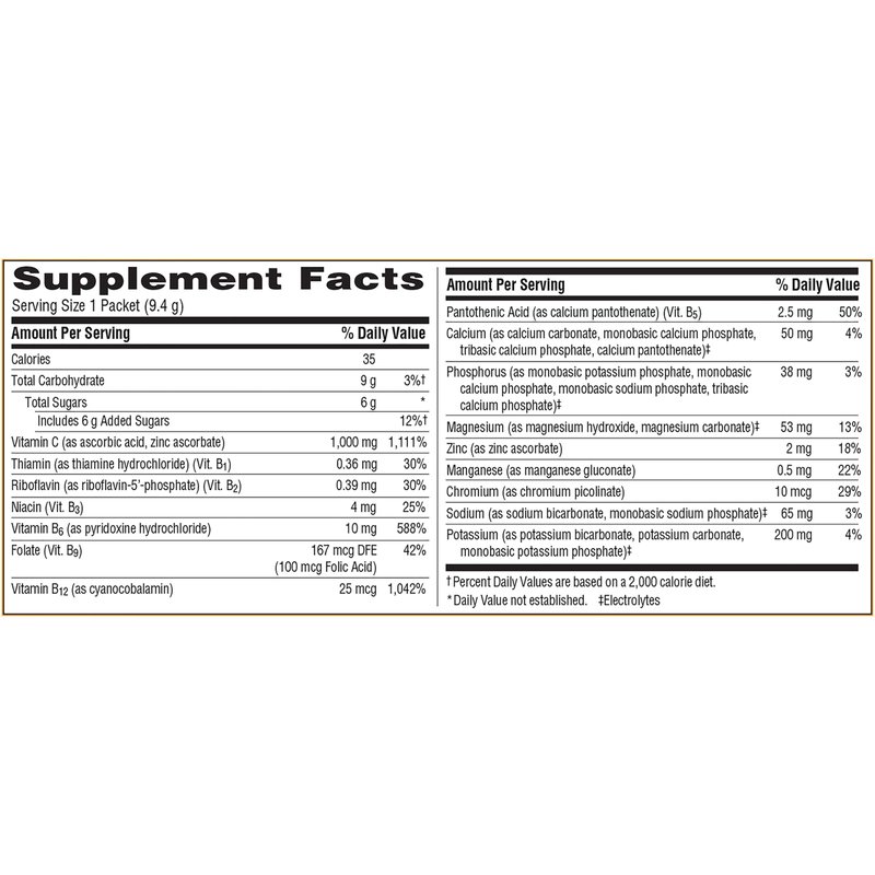 - Also contains B Vitamins, Electrolytes, and other Antioxidants like Zinc and Manganese