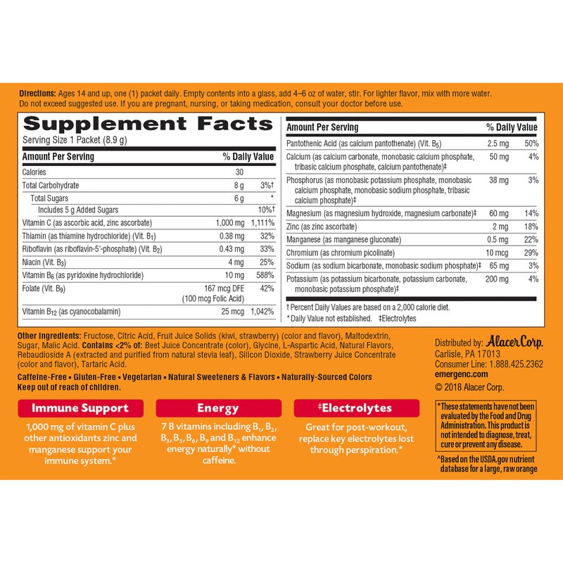 - Includes 30 packets (0.31 oz. each) of Emergen-C Original Formula in Strawberry-Kiwi flavor