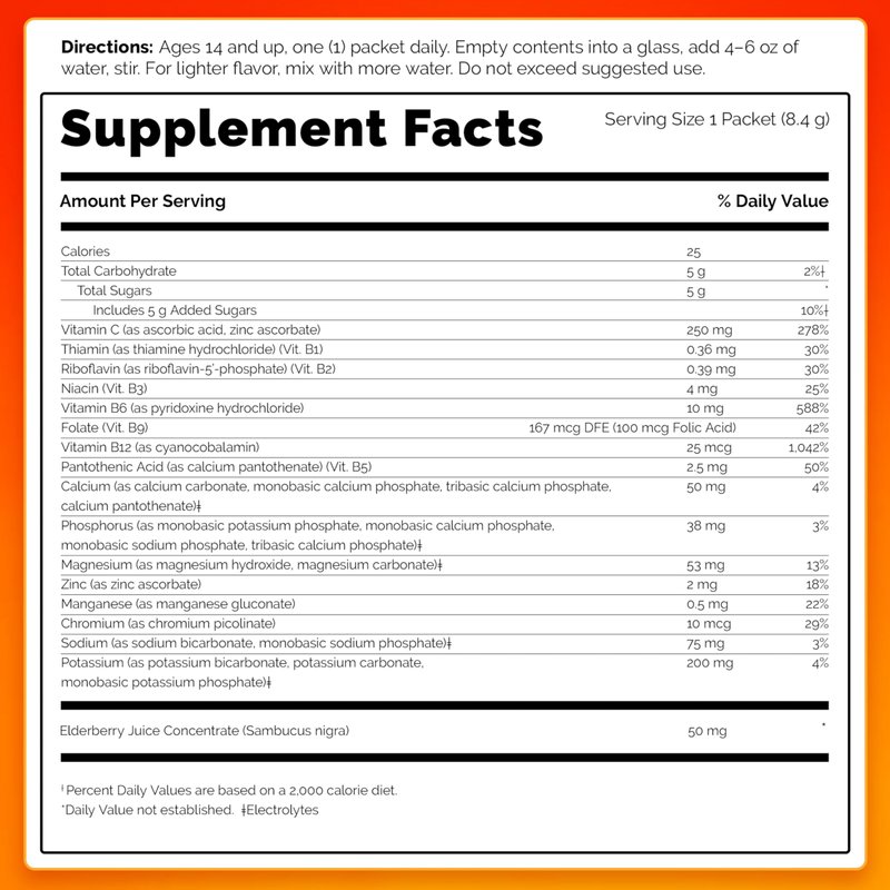 - This elderberry instant drink mix also support your immunity with antioxidants Zinc and Manganese, and B vitamins to naturally enhance your energy