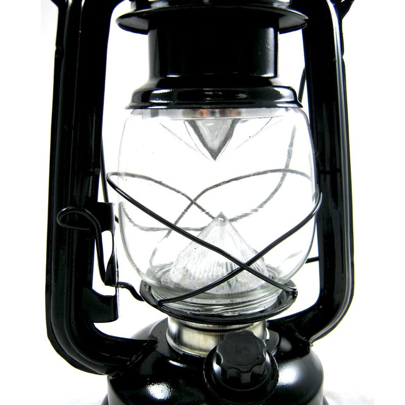 This lightweight and inexpensive battery powered lamp is made in the classic vintage style of a hurricane kerosene lantern.