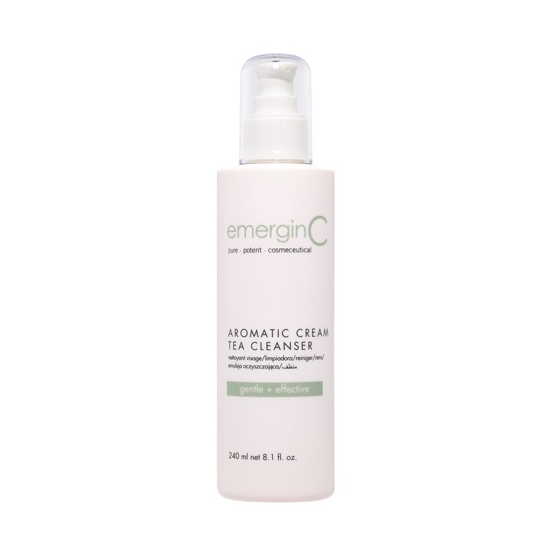 emerginC Aromatic Cream Tea Cleanser is a gentle, aromatic creamy cleanser. This soap-free formula thoroughly eliminates makeup, impurities and dead skin cells without wiping the natural moisture and oils from your skin.