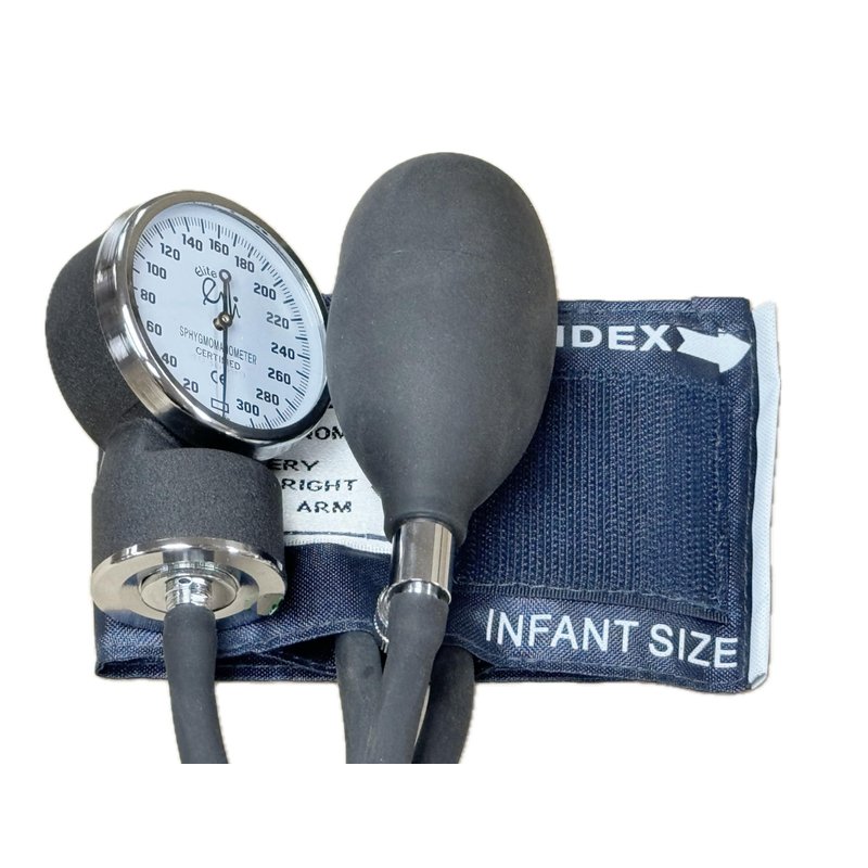 - MANUAL BLOOD PRESSURE MONITOR WITH INFANT CUFF: The Aneroid Sphygmomanometer Manual Blood Pressure with infant sized cuff from Elite Medical Instruments.