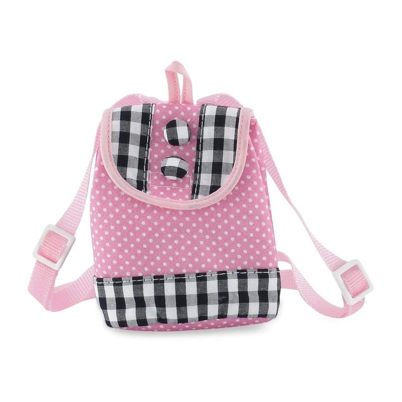 - FEATURE DESCRIPTION: Includes fun, one of a kind pink, black and white polka dot backpack with plaid details.