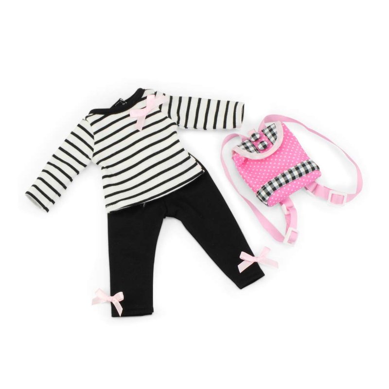 - FEATURE DESCRIPTION: Classic doll outfit with black and white striped long sleeved tee shirt and black ankle length leggings!