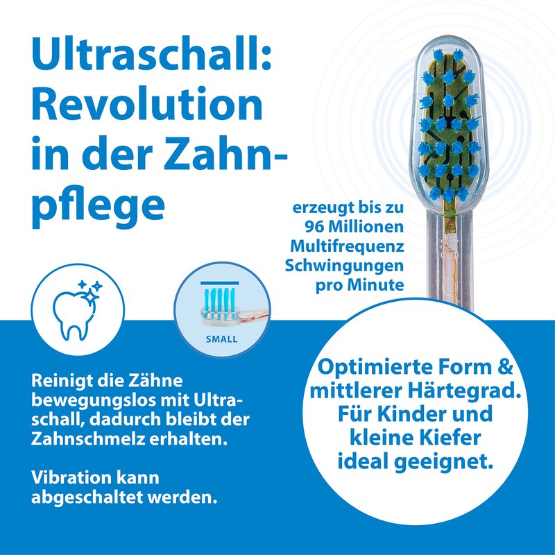 - WAVE, DON’T BRUSH: Emmi-dent changes the way you clean your teeth with innovative ultrasound technology. Just wave the electric toothbrush head over teeth and gums to let the ULTRASOUND Waves do the cleaning – not the bristles. Our electric toothbrush heads contain patented Piezo-chip technology to create ultrasound waves. The bristles serve as antennas to deliver targeted waves directly onto teeth and gums. No brushing, no vibrations, no unpleasant sensations.