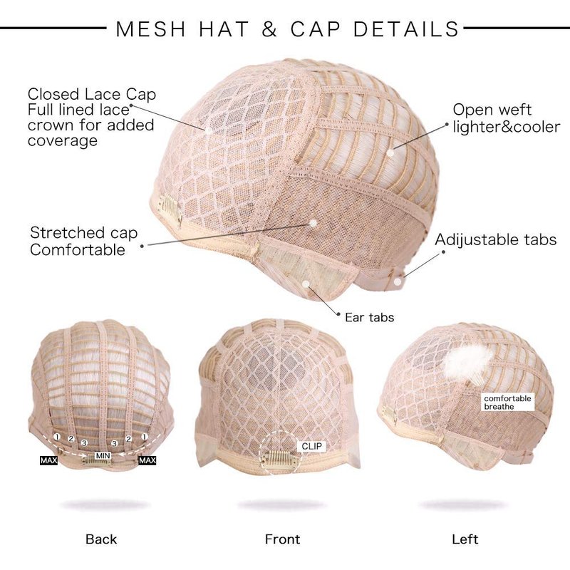 - 【Breathable & High Elastic Cap】-- The open wefted construction is well ventilated for a cool, comfortable fit. Adjustable elastic band and hair clips provide you best wearing experiences. Size of wig cap is 21”-23”.You can adjust the strap to make it suit you well. The crown use simulation scalp which make the wig realistic.