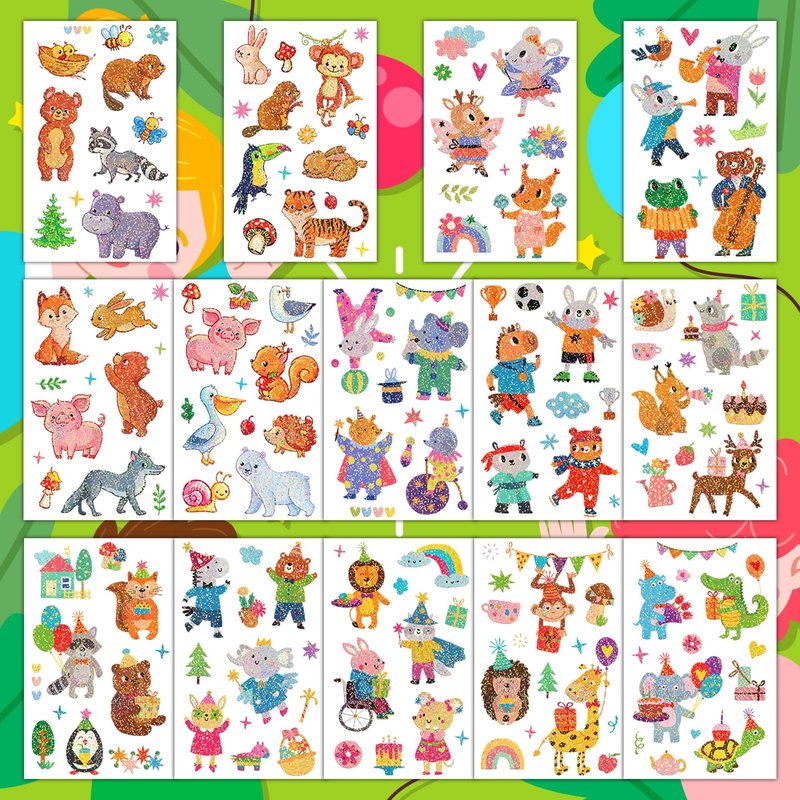 EMOEM Glitter Tattoos for Kids, 14 Sheets Temporary Tattoo Kids Stickers Toys, Party Favors Goodie Bags Games Accessories for Boys and Girls (Animal)