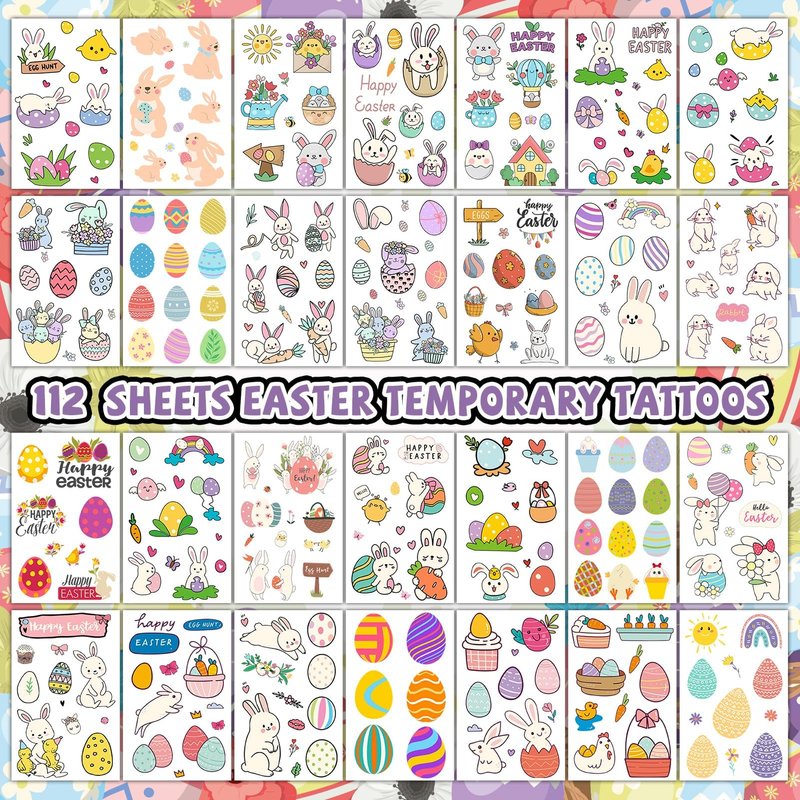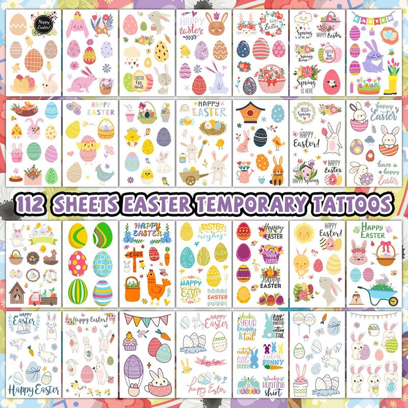EMOME 112 Sheets Easter Tattoos for Kids Bulk, Kids Tattoos Temporary for Easter Egg Fillers, Easter Temporary Tattoos for Kids Party Supplies Favors Basket Stuffers