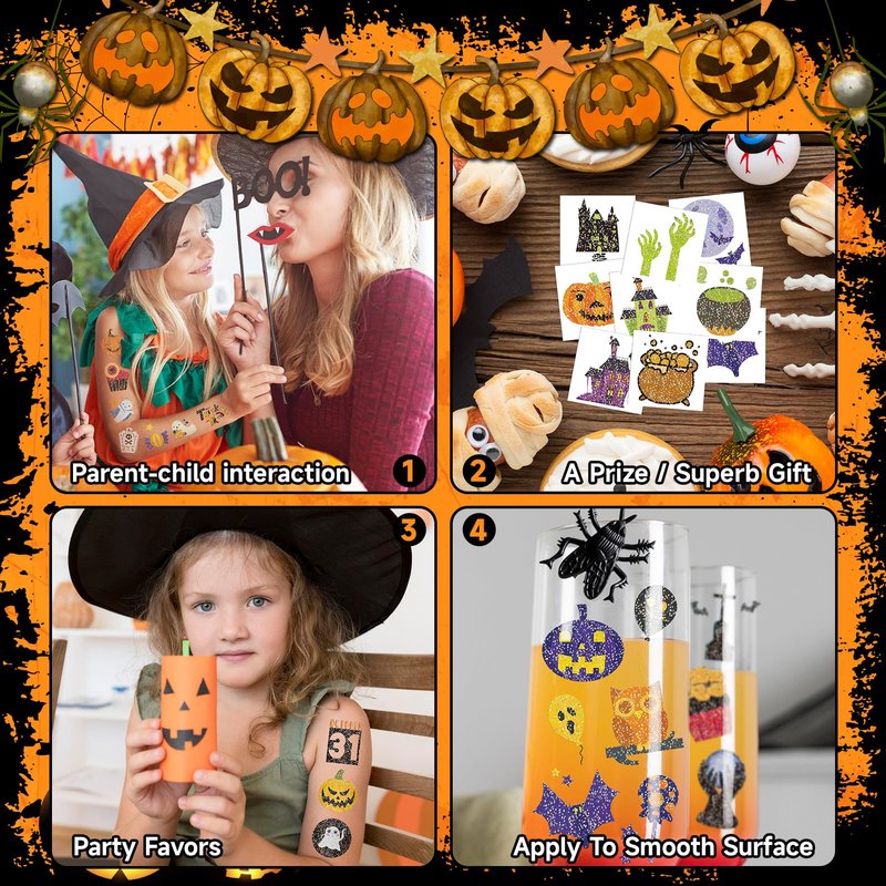 - 【Halloween Party Supplies】Bring a touch of sparkle to your Halloween celebrations and beyond with EMOME’s adorable glitter temporary tattoos. These charming designs are suitable for both festive parties and everyday playtime. Featuring a variety of endearing and spooky motifs, these tattoos are designed to delight and inspire.
