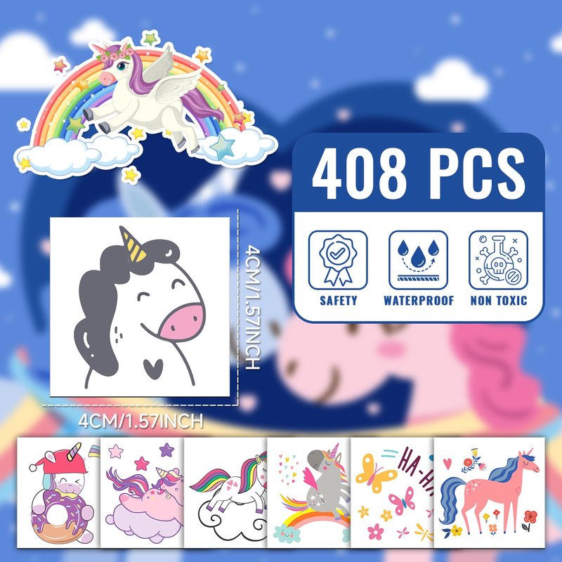 - 【Unique Tattoos Design】You will get 408 pcs of kids tattoos including various styles of rainbows, castles, diamonds, and other fascinating design patterns. All the patterns are not repeated, your child will love discovering new and cute designs.