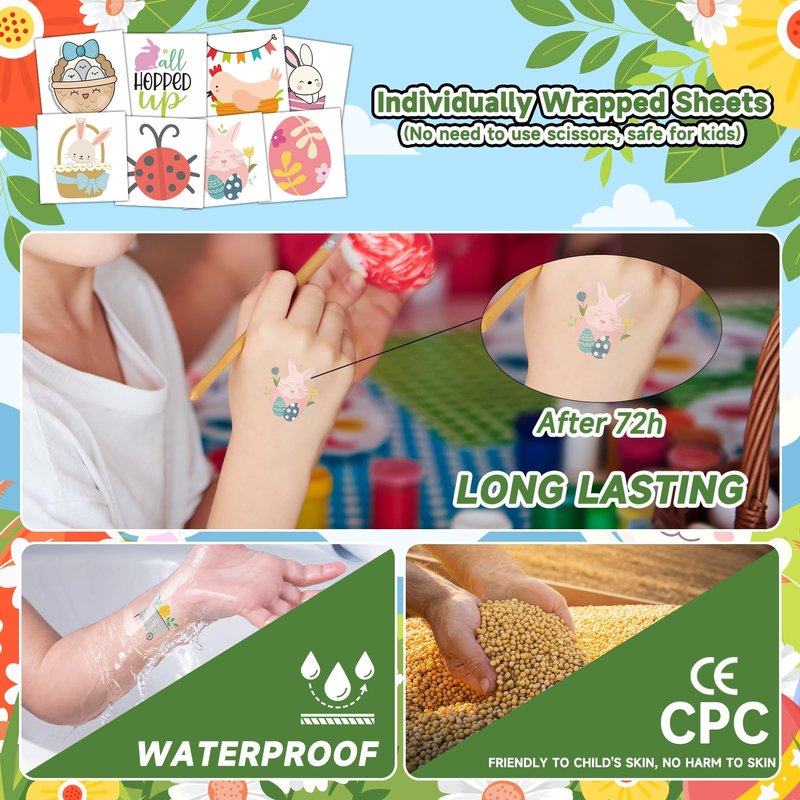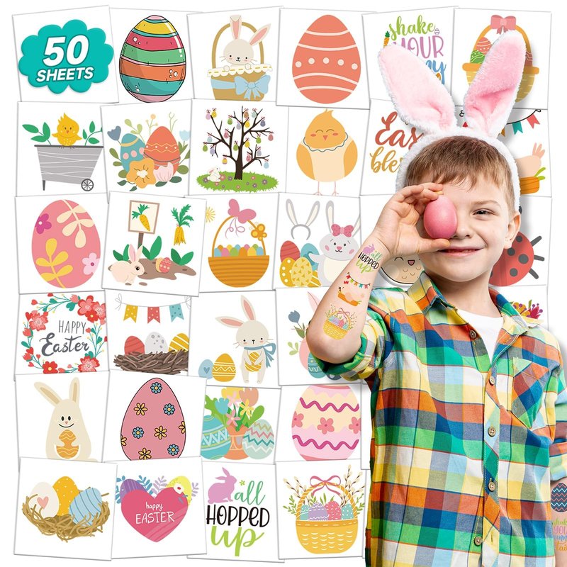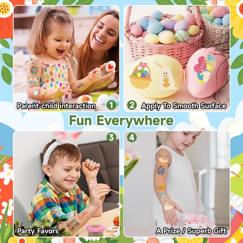 - 【Wide Applications for Easter Festival】These tattoo stickers are suitable for easter egg fillers, easter party supplies, easter goodies for kids, easter party favors, easter basket stuffers, games, egg hunts, and so on.