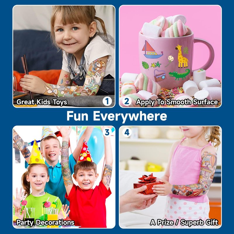 - 【Fun and Interactive Toy for Kids】Kids' temporary tattoos are wonderful toys for encouraging creativity and self-expression when they explore tattoo stickers for fun with their partner or interact with family!