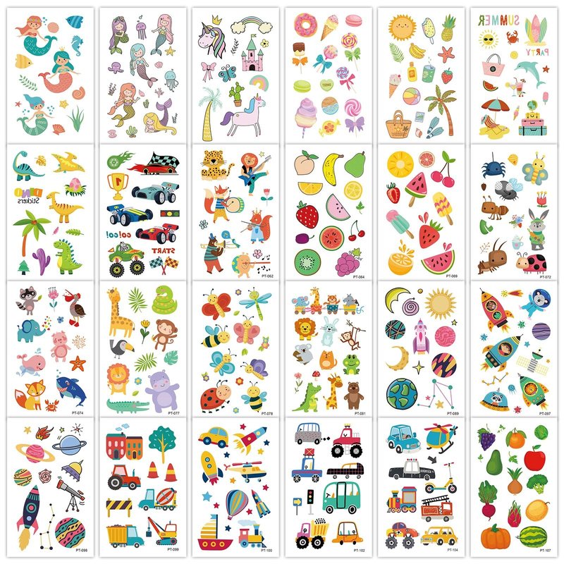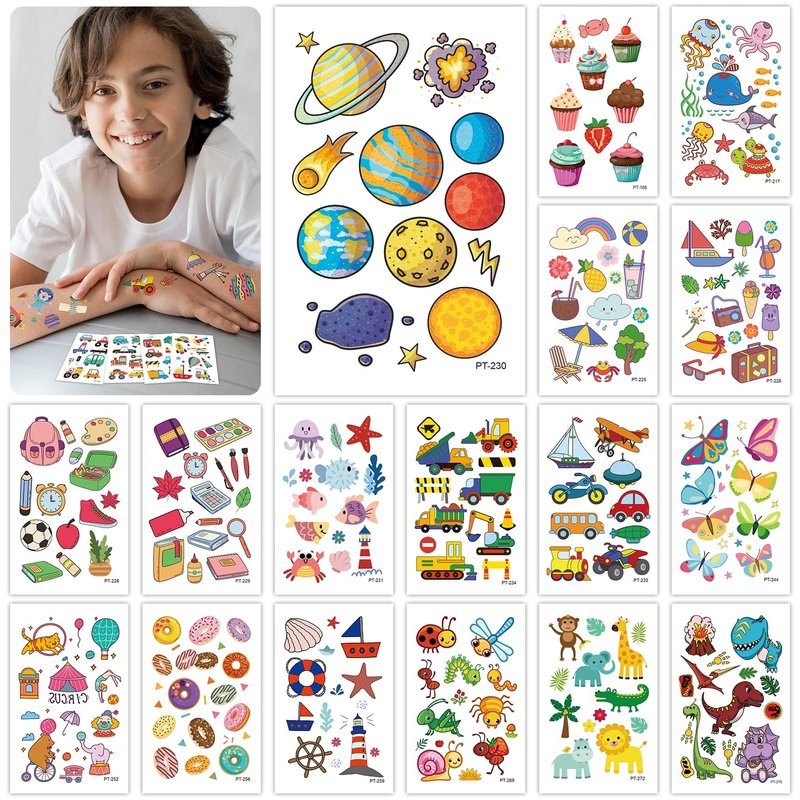 - 【Wide Application】Kids temporary tattoos are suitable for kids' party favors, birthday party supplies decorations, school carnivals, kids' goodie bag stuffers, and rewards! And kids' tattoos can be applied to hands, arms, or some smooth object, such as a bottle, box, glass, etc.