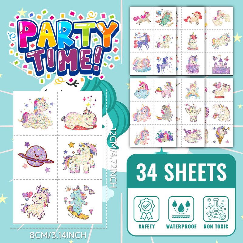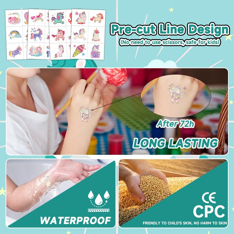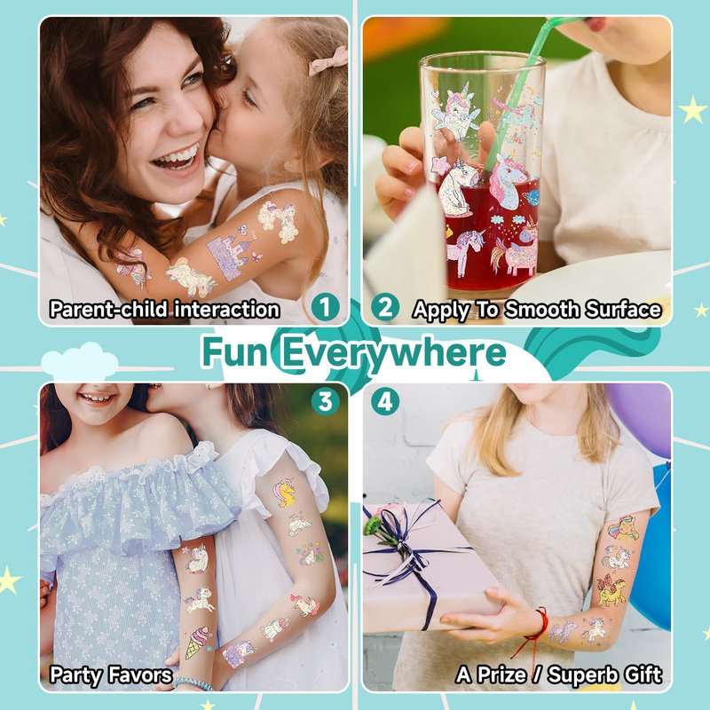 - 【Girls Party Accessories 】Great for girls' birthday parties, baby showers, little girl theme parties, goodie bags, classroom rewards, etc. The waterproof tattoos will not come off easily, usually lasting 3-5 days.