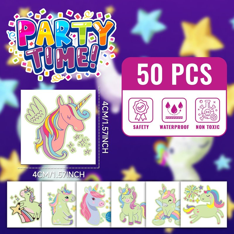 - 【Temporary Tattoos for Girls】The package includes a delightful collection of 50 individual temporary tattoos, ensuring that every child at the celebration can receive an adorable tattoo. These luminous designs are sure to add a touch of magic and enchantment to any event, making them the perfect choice for a memorable and fun-filled gathering. A Sparkling Addition to Your Party!