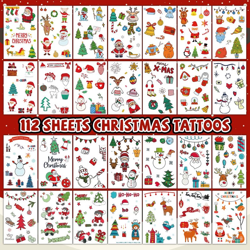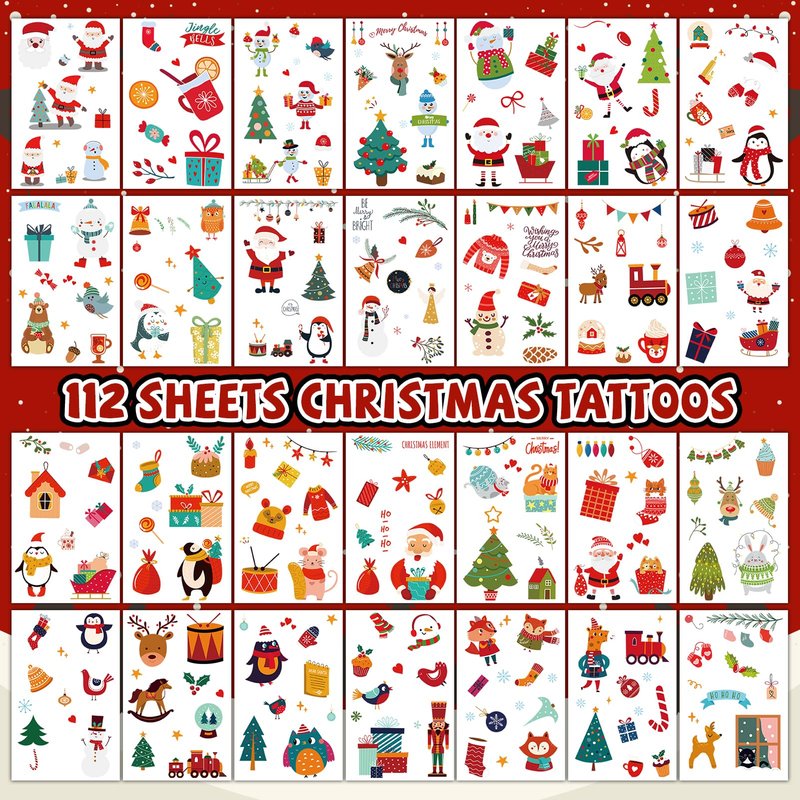 - 🎄Large Variety: There are 112 sheets with 1300 elements in these Christmas tattoos for kids. There's bound to be one of these tattoo stickers that you'll love!