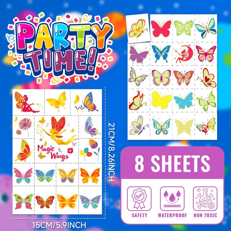EMOME Temporary Tattoo - Glow + Metallic Glitter Style Tattoos for Kids Party Supplies, Temp Tattoos Sticker for Boys Girls, Birthday Party Favor Decorations Accessories (Butterfly)